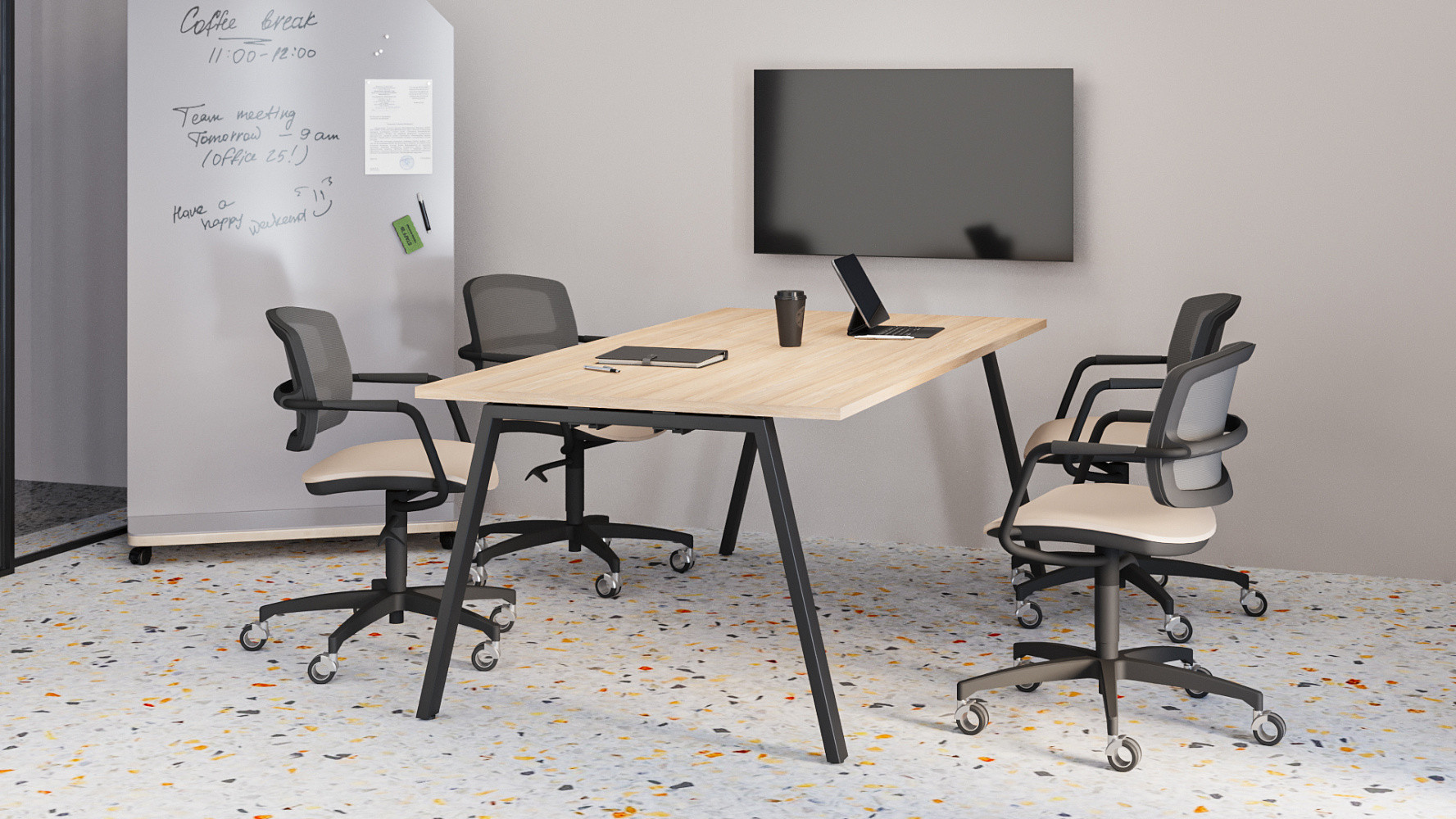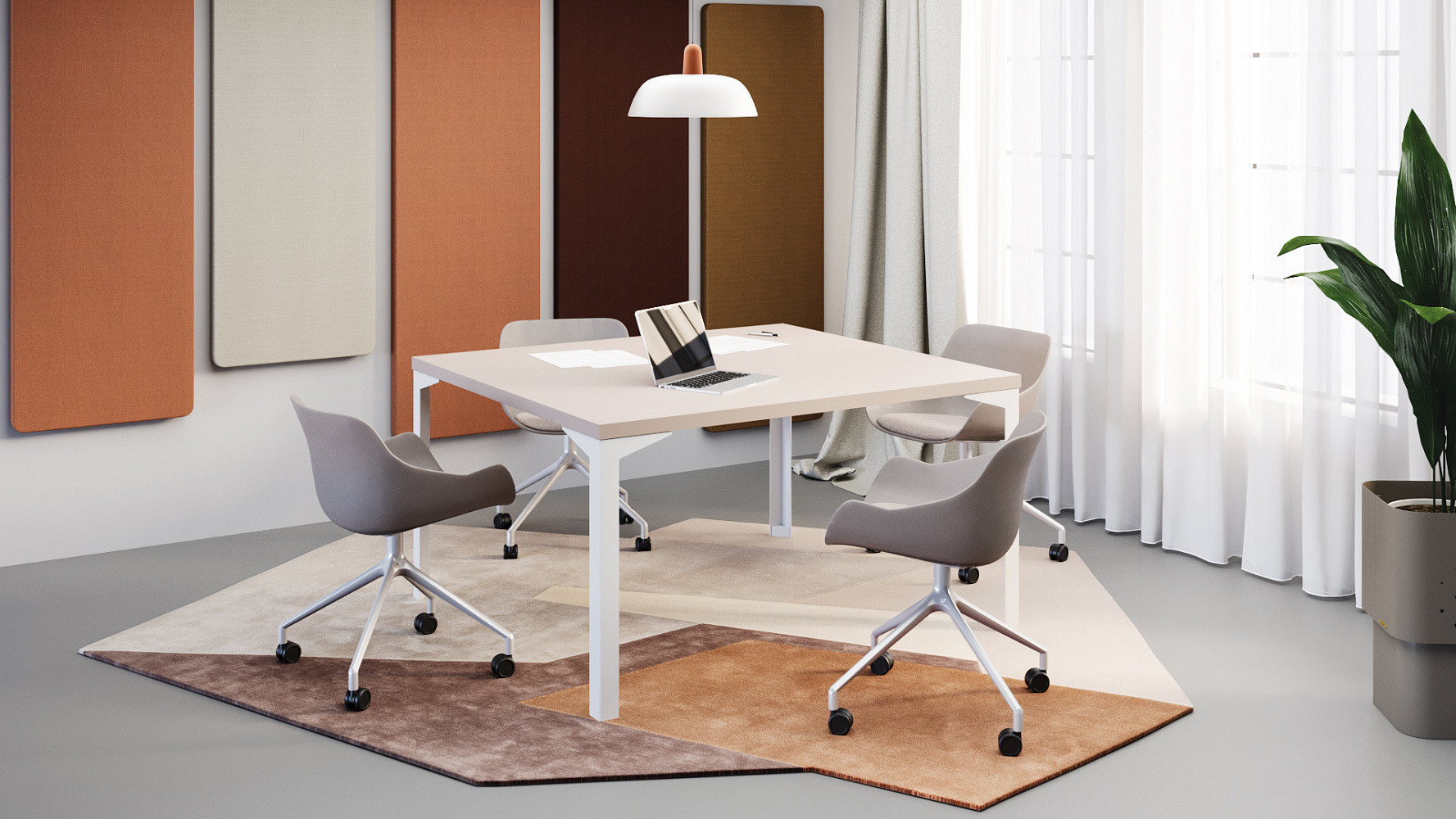 Доступны к заказу переговорные столы различных форм, размеров и комплектаций. Возможны вариации по форме столешниц, вида опор, дополнительными аксессуарами кабель-менеджмента и сочетанием декоров.